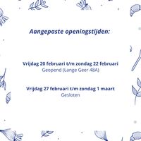 Zaterdag: 09:00 - 16:00 Zondag: 09:00 - 13:00